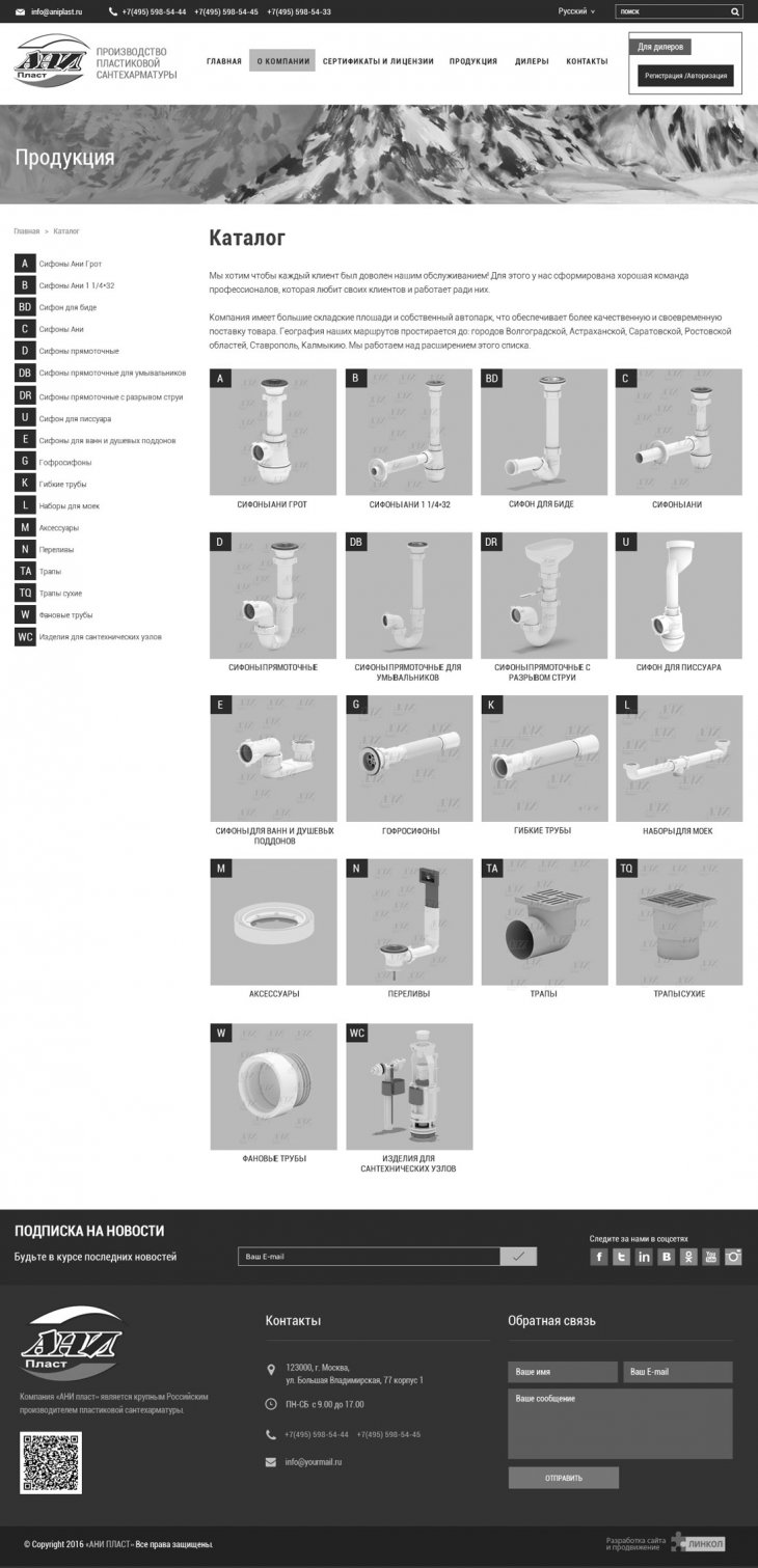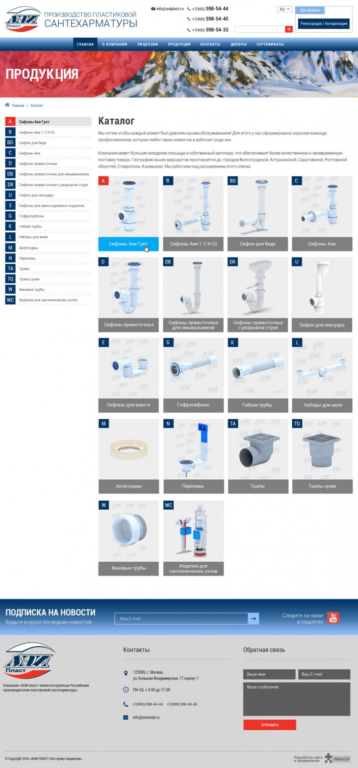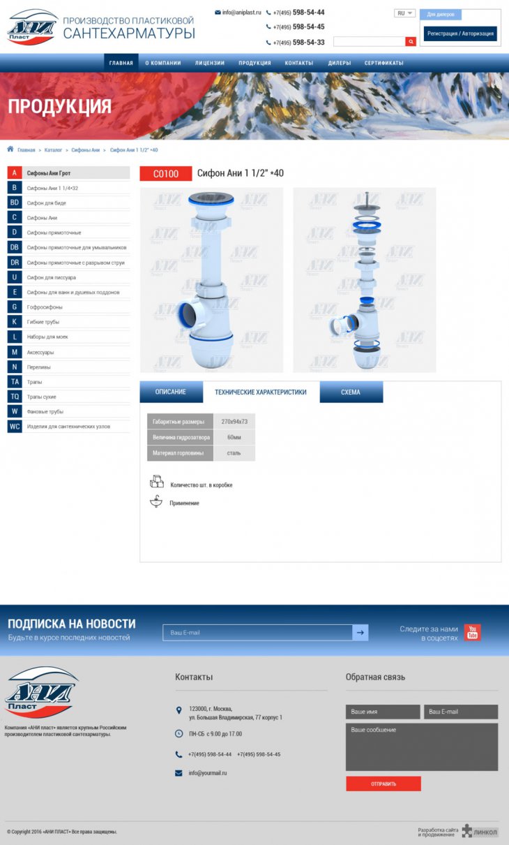 Компания «АНИ пласт» является российским производителем водосливной арматуры. На рынок сантехники компания вышла в 2001 году и на сегодняшний день занимает лидирующую позицию в сегменте недорогой и одновременно высококачественной продукции.