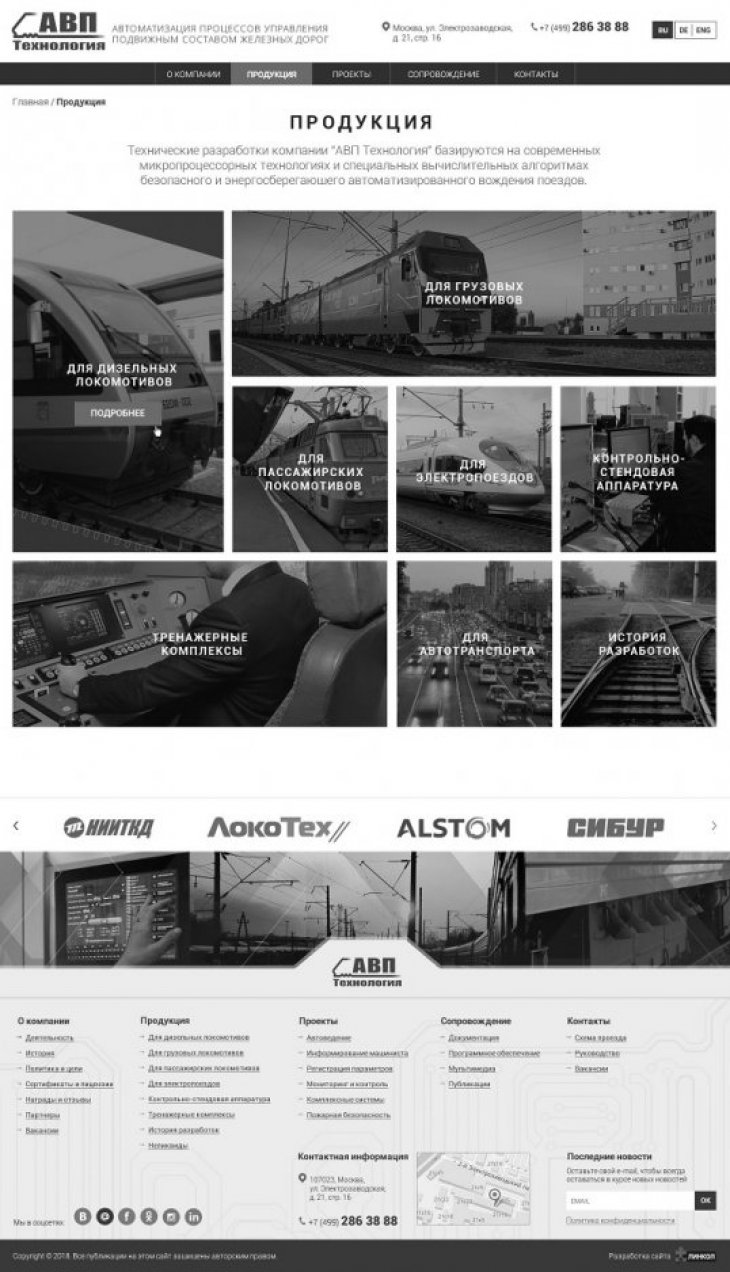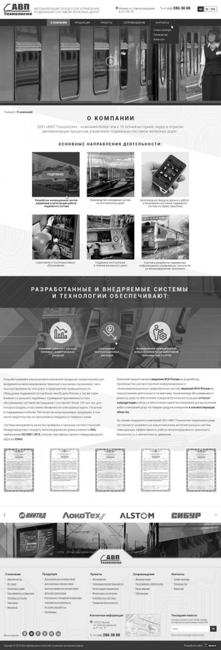 ООО «АВП Технология» — компания с более чем 20-летней историей, лидер в отрасли автоматизации процессов управления подвижным составом железных дорог. Разработка инновационных систем управления и регистрации работы подвижного состава; Производство и внедрение систем на сети железных дорог; Беспроводная передача данных о работе и техническом состоянии подвижного состава на сервер заказчика.