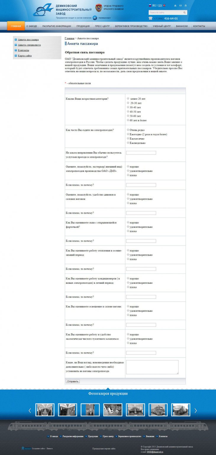 Для улучшения качества продукции был создан модуль «Онлайн-анкетирование пассажиров и специалистов». Создана англоязычная версия сайта. Добавлен модуль «Онлайн-отправки резюме».