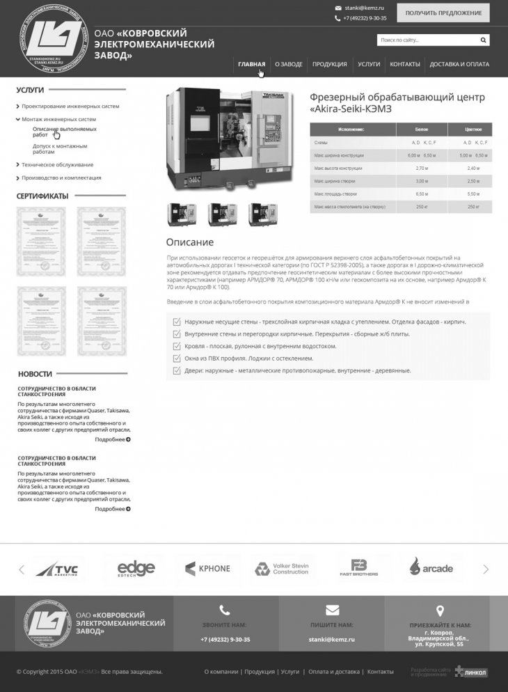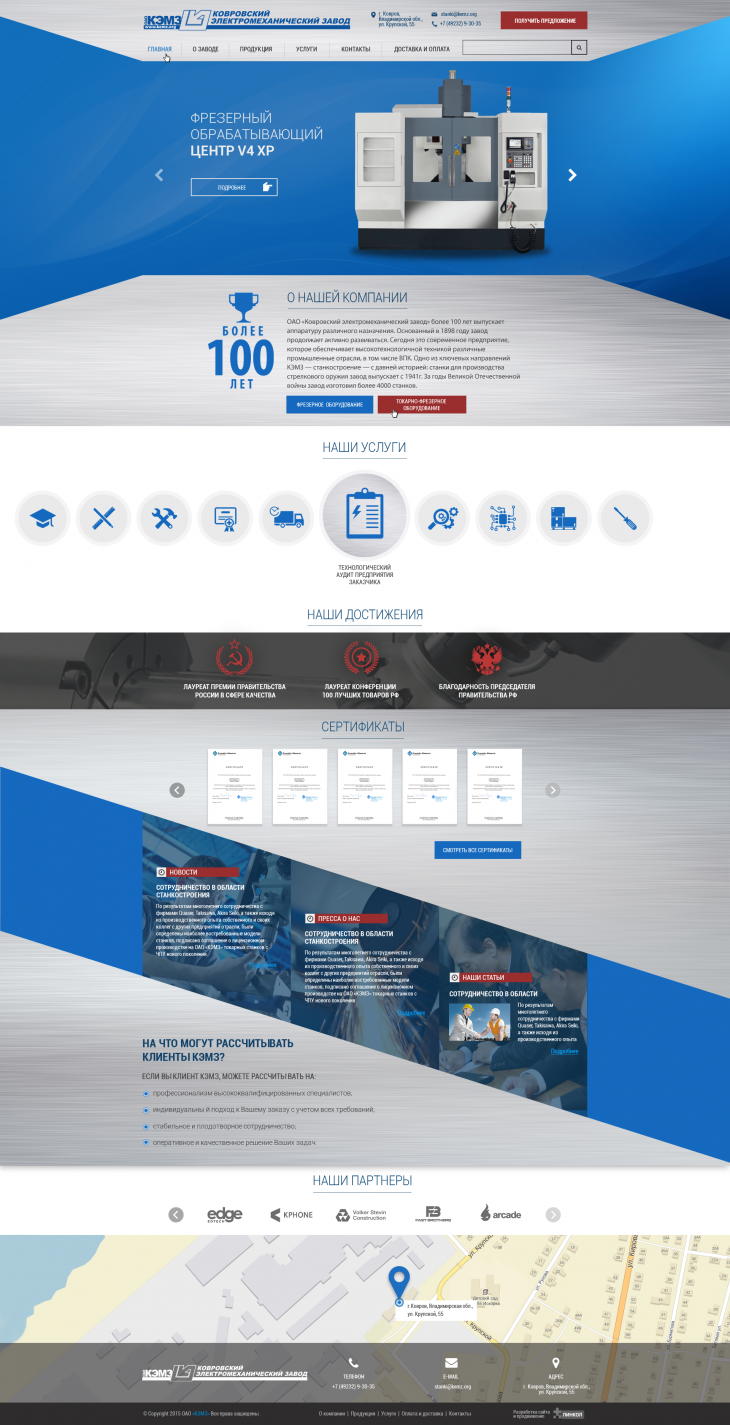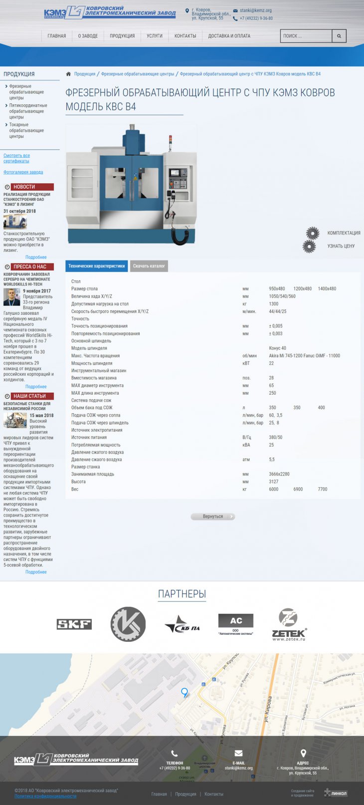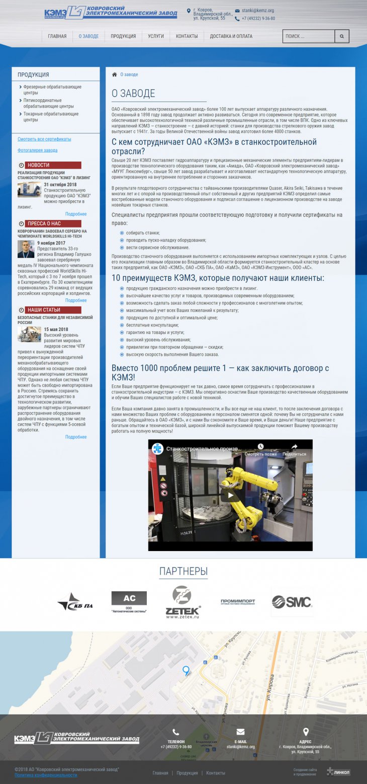 ОАО «Ковровский электромеханический завод» более 100 лет выпускает аппаратуру различного назначения. Основанный в 1898 году завод продолжает активно развиваться. Сегодня это современное предприятие, которое обеспечивает высокотехнологичной техникой различные промышленные отрасли, в том числе ВПК. Одно из ключевых направлений КЭМЗ — станкостроение — с давней историей: станки для производства стрелкового оружия завод выпускает с 1941г.