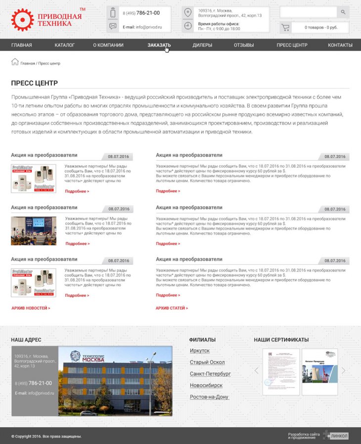 Промышленная Группа «Приводная Техника» - ведущий российский производитель и поставщик электроприводной техники с более чем 17-ти летним опытом работы во многих отраслях промышленности и коммунального хозяйства. В своем развитии Группа прошла несколько этапов – от образования торгового дома, представляющего на российском рынке продукцию всемирно известных компаний, до организации собственных производственных подразделений.