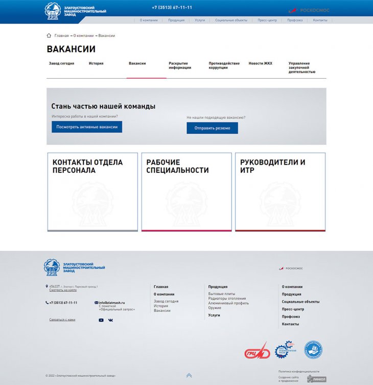 Акционерное общество «Златоустовский машиностроительный завод» (АО «Златмаш»), входящее в структуру Государственной корпорации по космической деятельности «Роскосмос», – одно из ведущих изготовителей составных частей ракетных комплексов стратегического назначения Военно-морского флота РФ и самое крупное в Челябинской области по объемам государственного оборонного заказа.