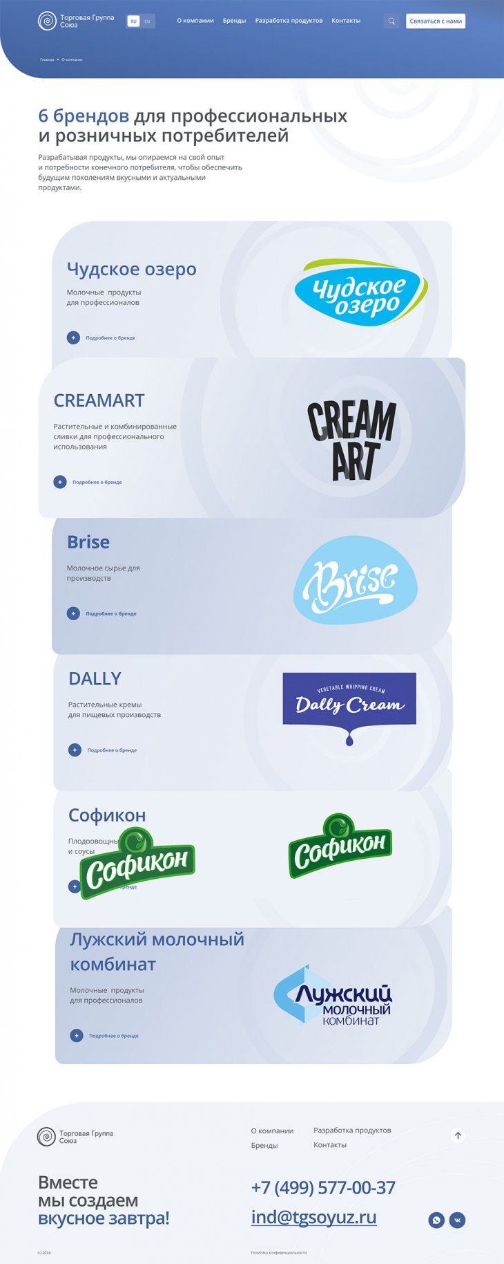 Производитель ингредиентов и готовых продуктов питания. Один из лидеров в категориях молочных сливок и творожных сыров. Новатор отечественного рынка растительных кулинарных сливок.