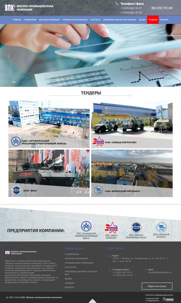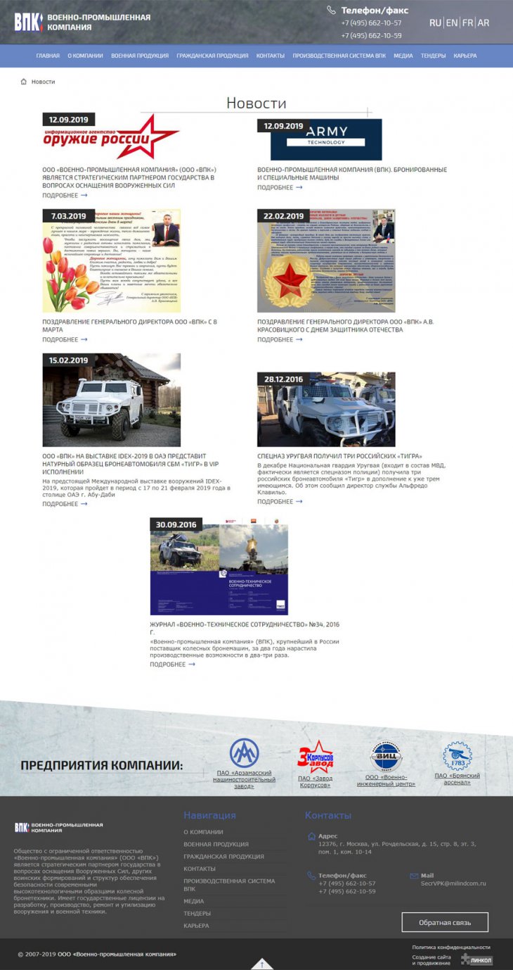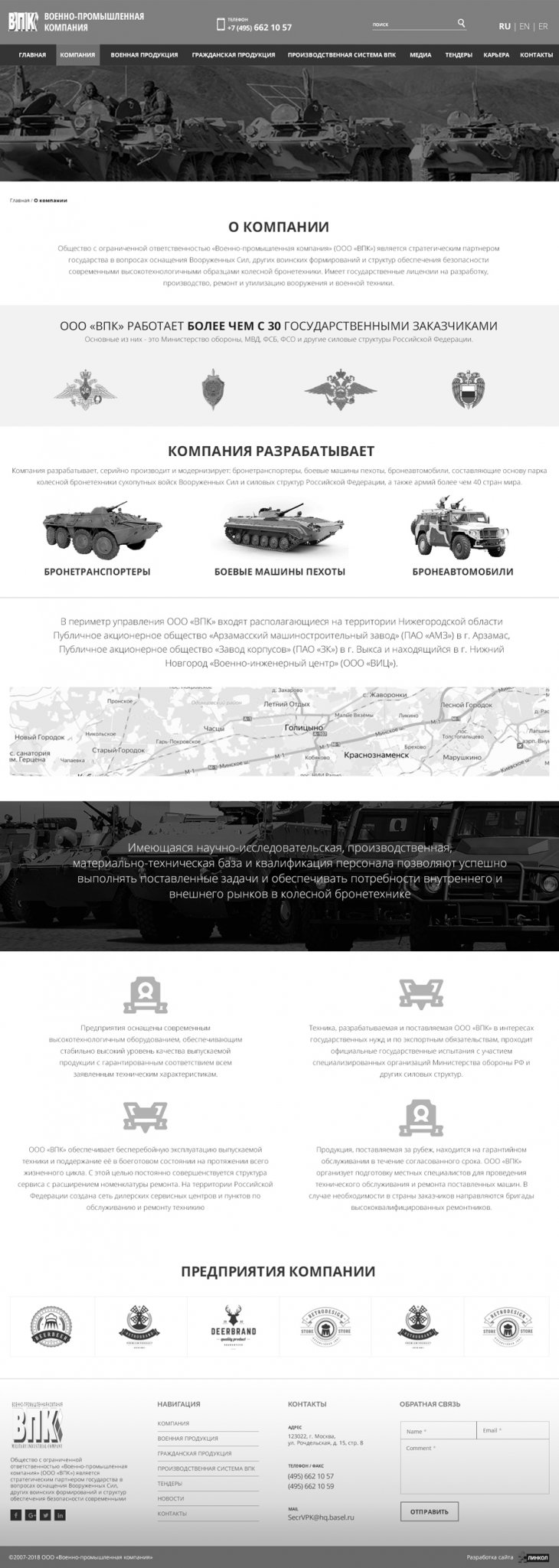 Общество с ограниченной ответственностью «Военно-промышленная компания» (ООО «ВПК») занимает надежную позицию стратегического партнера государства в сфере поставок специализированной высокотехнологичной бронетехники для нужд военных и силовых структур Российской федерации. Компания имеет государственную лицензию на разработку, производство, испытание, установку, монтаж, техническое обслуживание, ремонт, утилизацию и реализацию вооружения и военной техники.