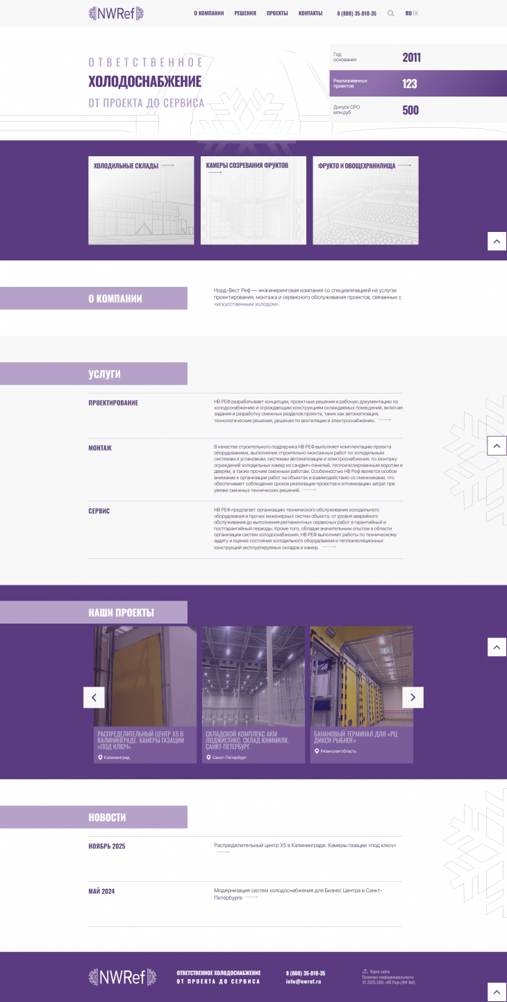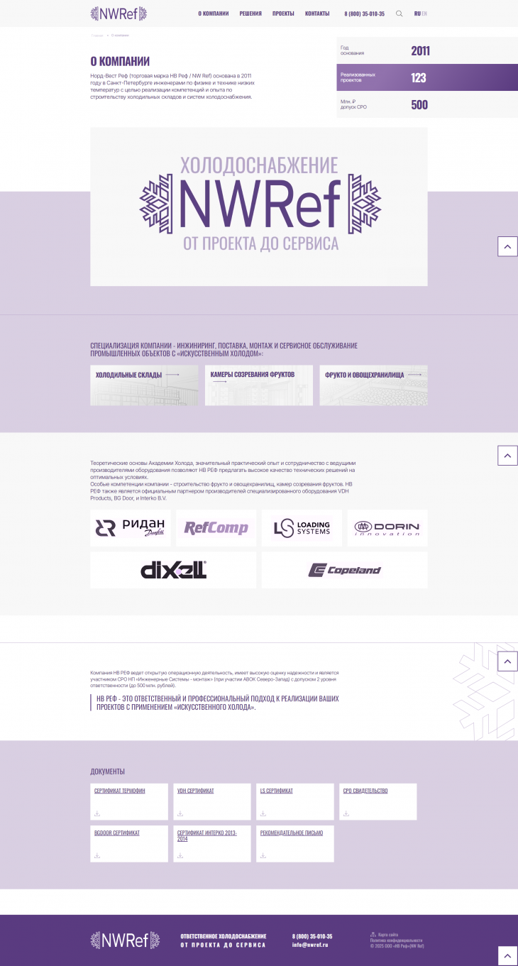 Норд-Вест Реф — инжиниринговая компания со специализацией на услугах проектирования, монтажа и сервисного обслуживания проектов, связанных с «искусственным холодом».Норд-Вест Реф — инжиниринговая компания со специализацией на услугах проектирования, монтажа и сервисного обслуживания проектов, связанных с «искусственным холодом».