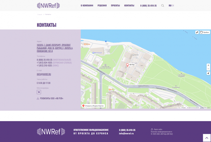 Создание сайта для ООО «НВ Реф»